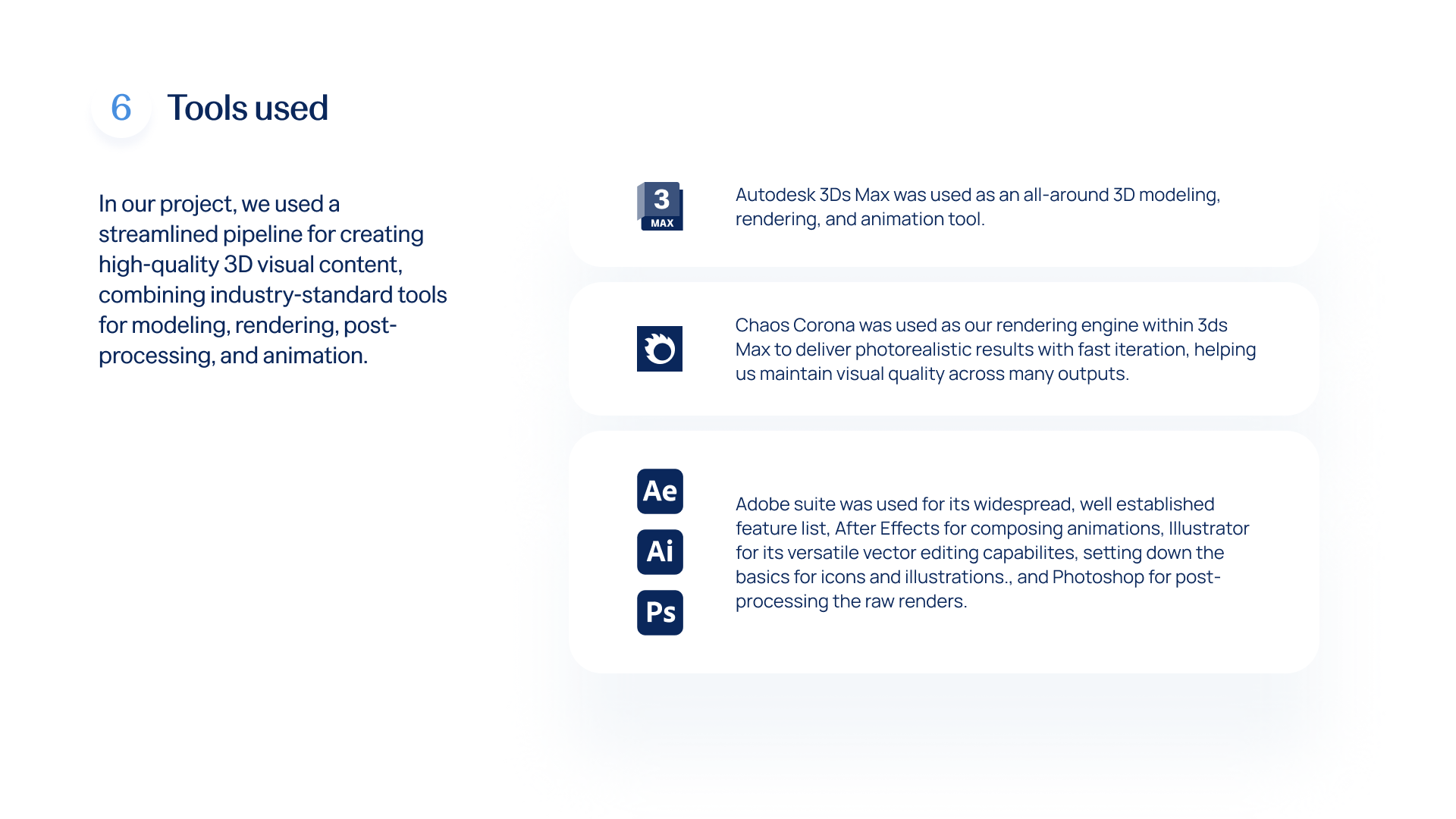 - Post-production and editing of product images and animations