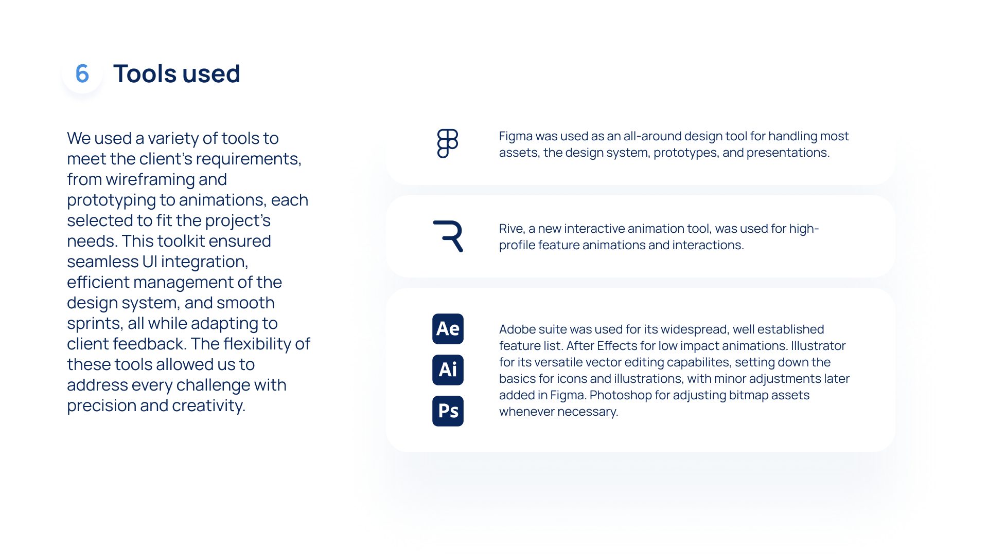 - Designing the visual elements of a product, from typography to animations